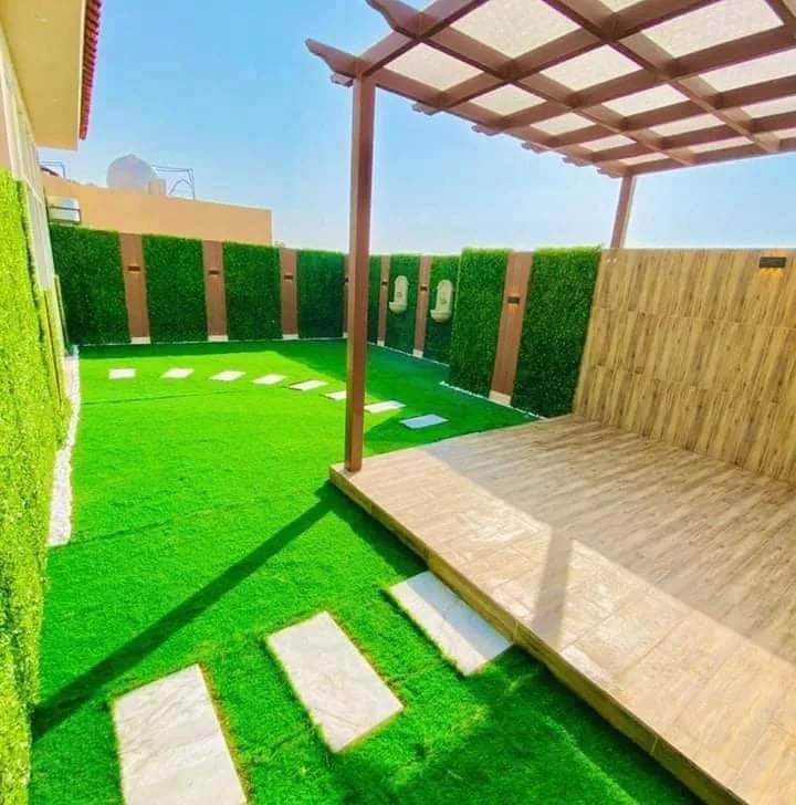 حديقة فيلا الشاطئ: تم تحويل مساحة صغيرة خلفية فيلا إلى جنة خضراء باستخدام النباتات المحلية، ومسار حجري، وبركة صغيرة. تم استخدام نظام ري ذكي لتقليل استهلاك المياه، وإضافة إضاءة ليلية لتوفير جو ساحر في المساء.