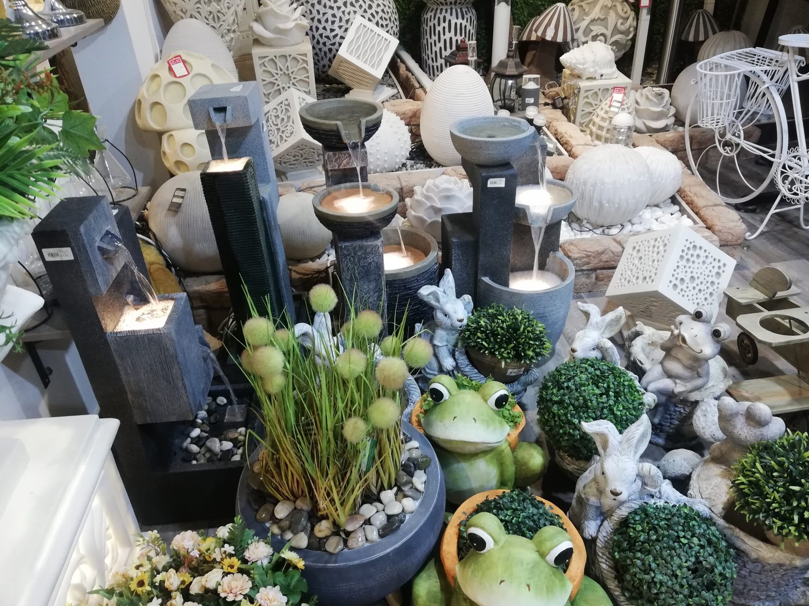 مساحات النجيل والورود والمقاعد والسيراميك والأحجار والأعمدة وأدوات الزينة, بالإضافة إلى توفر الكثير من العروض على مدار العام خاصة في مواسم الاحتفالات والأعياد,